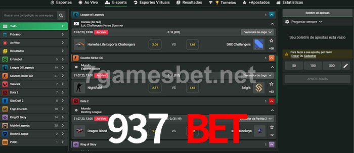 A aposta 937 Bet oferece aos jogadores a experiência mais conveniente de apostas em eSports!